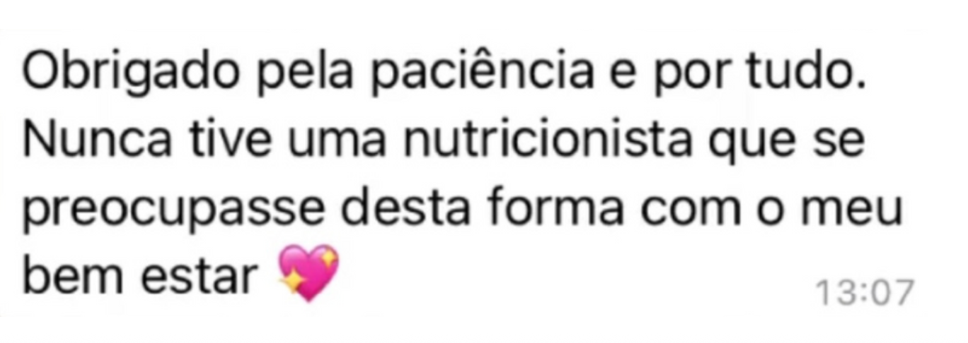Acredito que a reeducação alimentar é a chave para o sucesso, pelo que o meu método não impõe restrições ou suplementação obrigatória. Cada plano alimentar é totalmente personalizado, respeitando as necessidades individuais e preferências de cada paciente.
