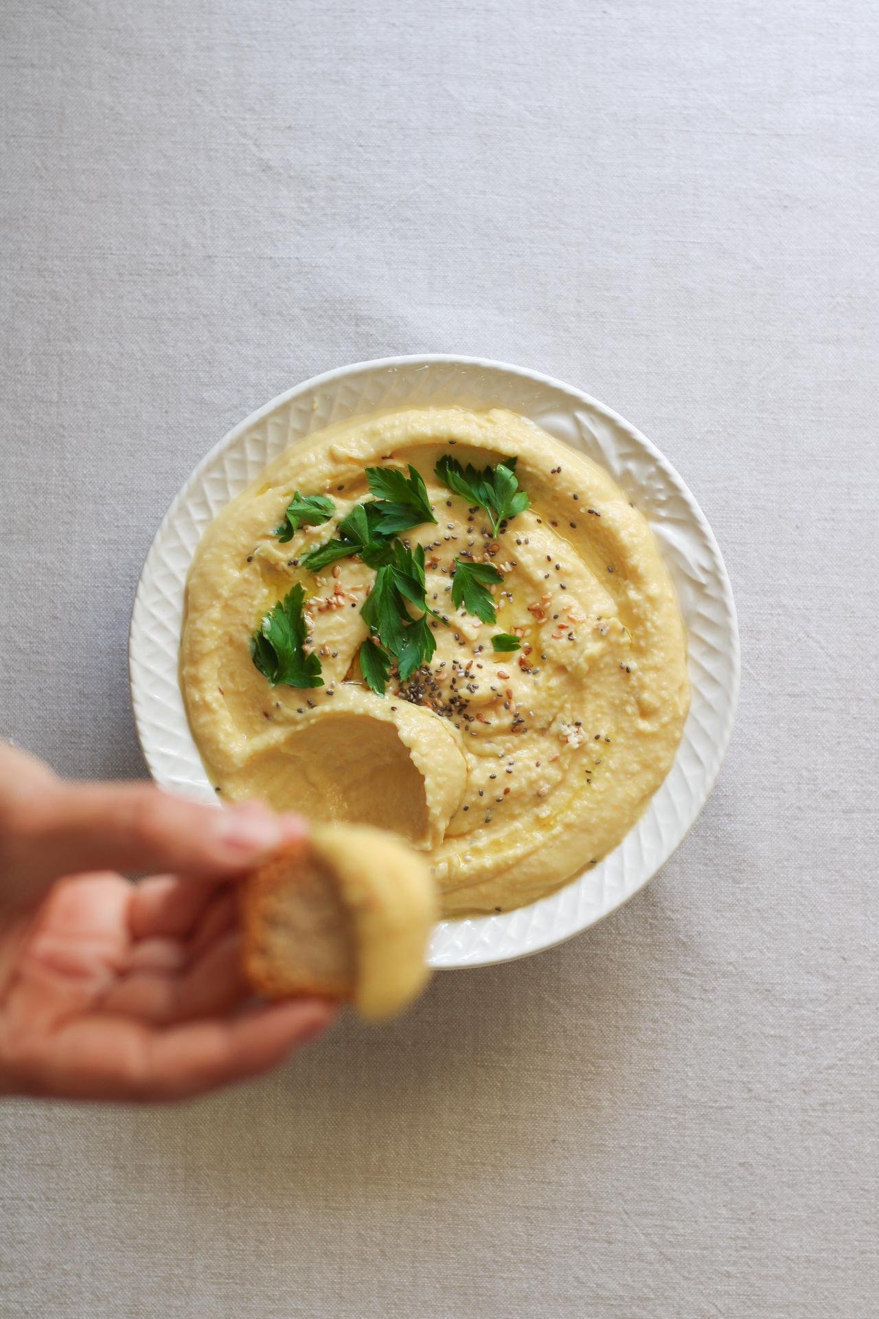 O Húmus é uma receita do Médio Oriente, feita à base de grão-de-bico cozido, com adição de outros ingredientes que lhe dão um sabor único e um resultado final muito saboroso. Trata-se de um puré/patê cremoso, ideal para barrar em tostas ou pão torrado ou consumido com palitos de legumes, como cenoura ou pepino. Substitui na perfeição os molhos e patês à base de maionese.