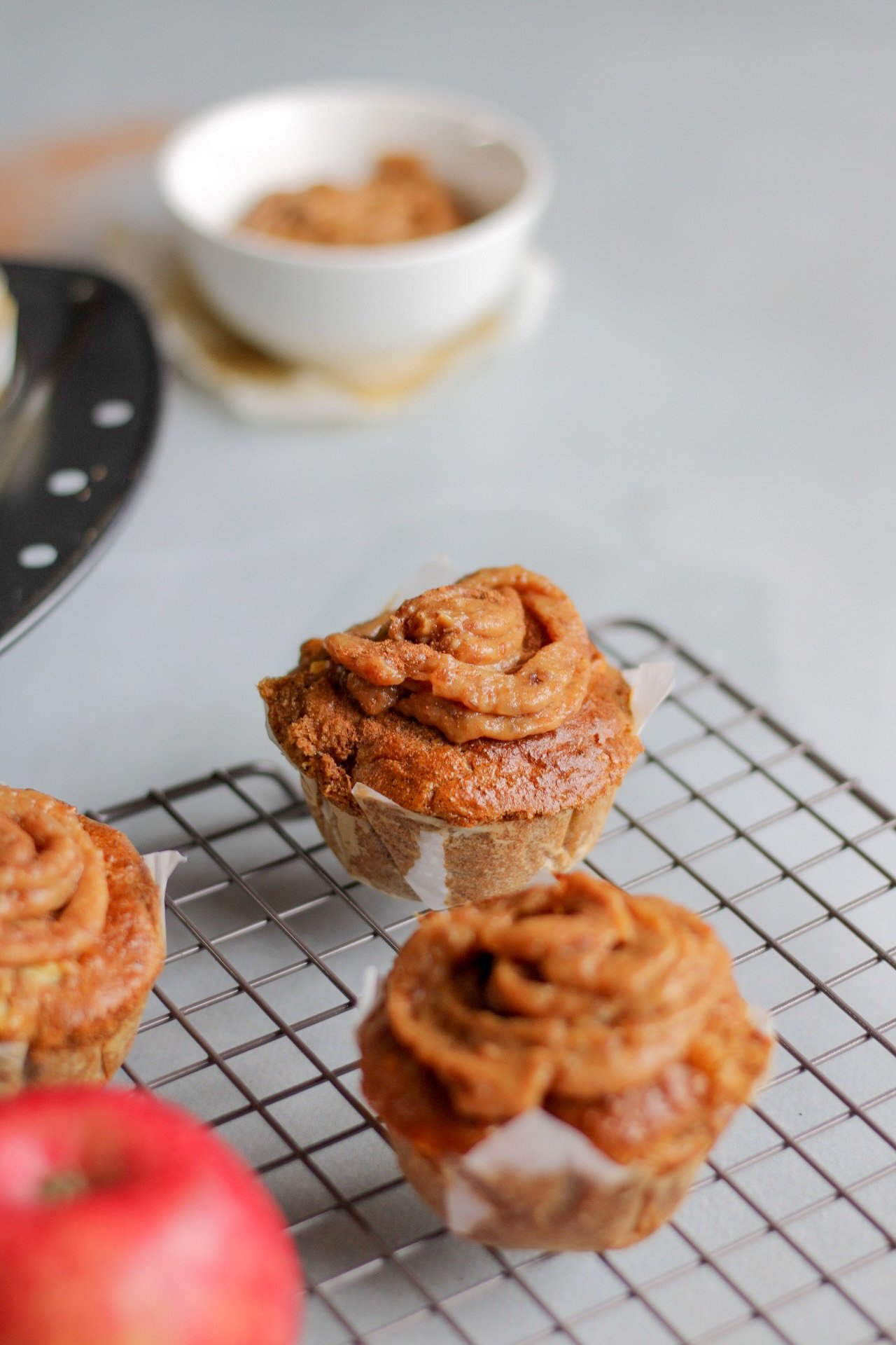 MUFFINS DE MAÇÃ E CANELA (COM CARAMELO DE TÂMARAS)