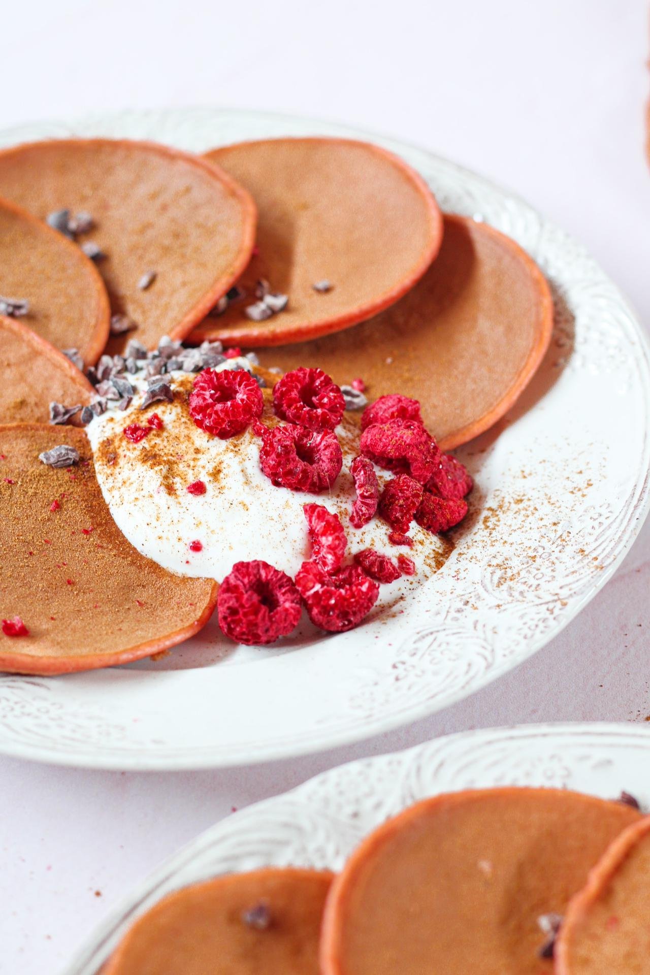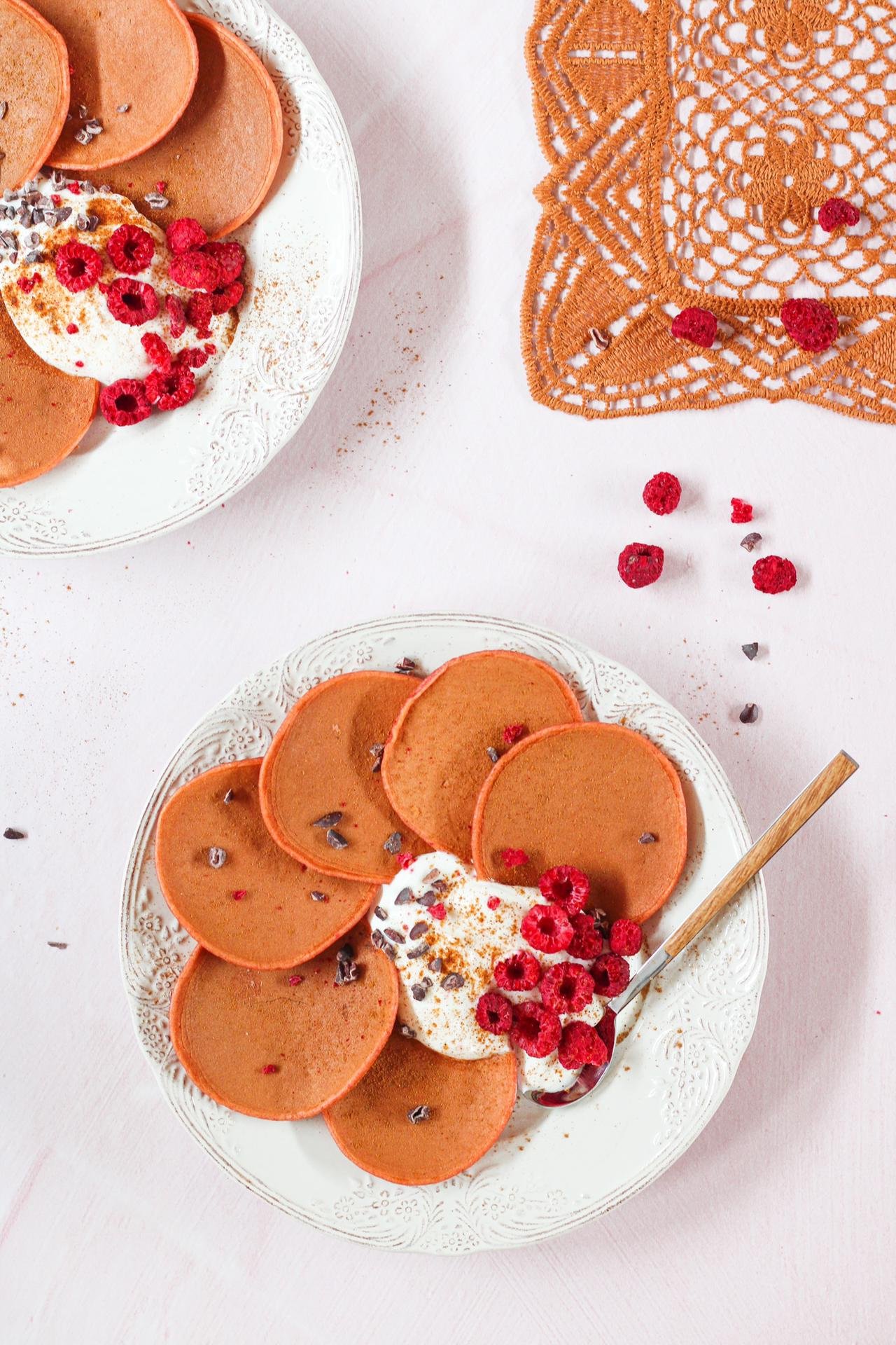 Hoje a sugestão é: panquecas de beterraba (e que não sabem a beterraba!) 🙂 Parece uma combinação totalmente improvável, certo? Mas, na verdade, acabou por resultar muito bem. Tinha beterraba a estragar-se no frigorífico e como não aprecio o seu sabor por si só, decidi arriscar em panquecas! Embora esperasse uma cor mais bonita, acabaram por ficar muito boas, com um sabor neutro e cheias de nutrientes! E para os mais reticentes… Não há nada como experimentar, certo? Vamos à receita?